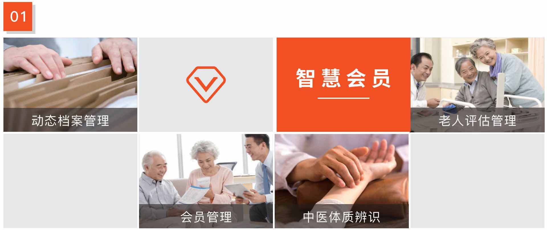 對所管理的老人基本信息(基本信息、健康信息、親屬信息等)動態(tài)管理起來,并對老人活動能力、中醫(yī)體質(zhì)等進行評估,對老人分機管理;發(fā)展為會員的用戶進行個性化的會員服務(wù)管理。